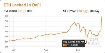 Неоднократно говорил ранее (например, в той же заметке DeFi: бег по граблям), что новомодное "доходное фермерство" будет стремительно смыто в унитаз при первых признаках разворота рынка. Не сказать, чтобы рынок уже глобально перешёл в новую фазу обвала, подобную мартовской. Но именно признаки разворота уже более чем проявились - курс того же ETH в первую неделю сентября сильно упал из-под почти 500 USD до примерно 322 USD (падение составило около 35%). И это не замедлило сказаться на "рынке" DeFi: